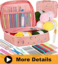 This crochet kit includes 59 pieces of crochet hooks and essential accessories. It comes with 9 ergonomic soft handle crochet hooks (2.0 to 6.0 mm), 12 steel lace crochet hooks (0.6 to 1.9 mm), 5 balls of yarn, 10 stitch markers, 6 plastic sewing needles, 4 U-shaped needles, 3 cable needles, 3 stitch holders, 2 pompom makers, 1 needle gauge, 1 pair of thread snips, 1 tape measure, 1 winding board, and a pink zippered storage bag. A truly complete crochet kit for beginners or experienced users. - Ideal for Beginners