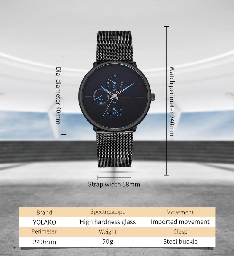 Mens Casual Luminous Quartz Watch  Slim Mesh Steel